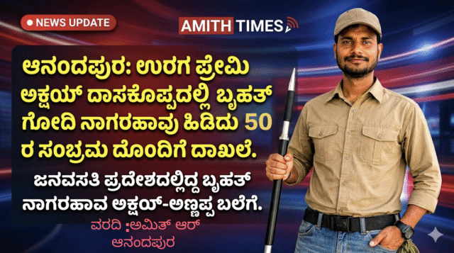 ಆನಂದಪುರ: ದಾಸಕೊಪ್ಪದ ಜನವಸತಿ ಪ್ರದೇಶದಲ್ಲಿ ಬೃಹತ್ ನಾಗರಹಾವು ಪ್ರತ್ಯಕ್ಷ; ಉರಗ ಪ್ರೇಮಿಗಳಿಂದ ಸೆರೆ..!!