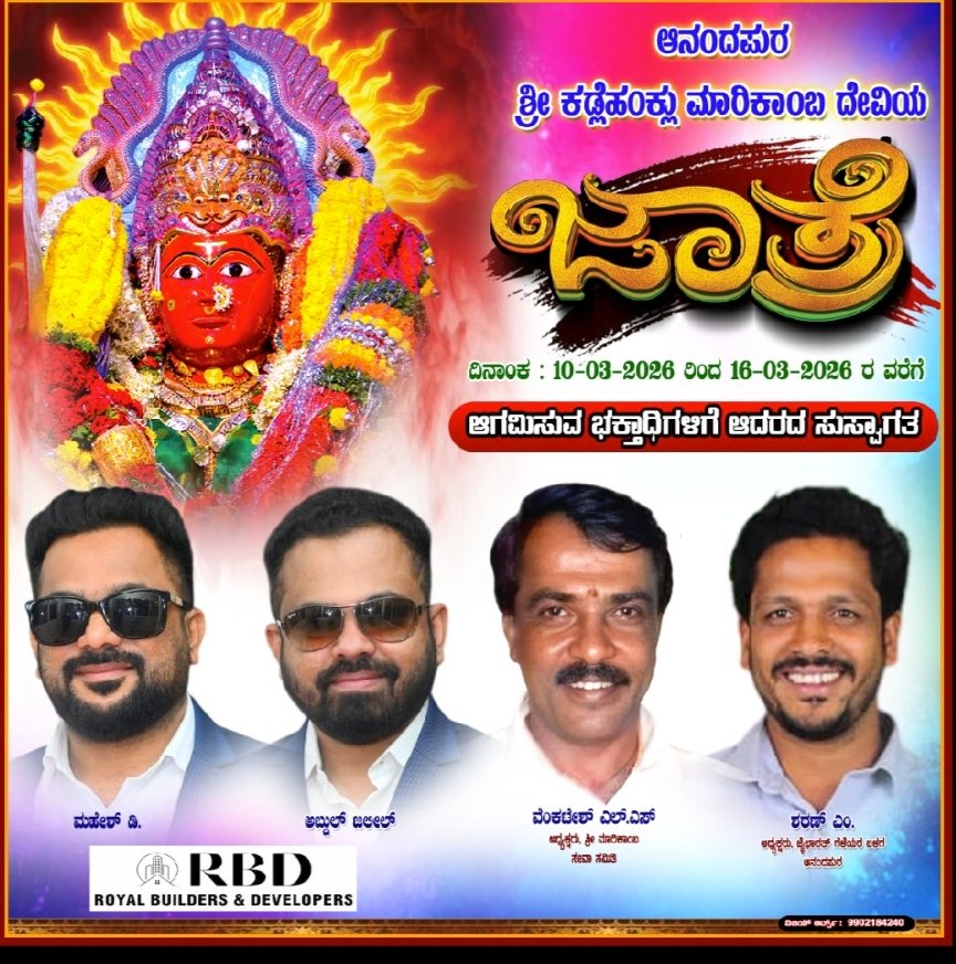 ಮಾರ್ಚ್ 13ರ ಶುಕ್ರವಾರ ಪೂಜಾ ವಿಧಿವಿಧಾನಗಳೊಂದಿಗೆ ರಾತ್ರಿ 10 ಗಂಟೆಗೆ ಶ್ರೀದೇವಿಯ ವಿಸರ್ಜನೆ ಕಾರ್ಯಕ್ರಮದ ಮೂಲಕ ಜಾತ್ರೆ ಸಂಪನ್ನಗೊಳ್ಳಲಿದೆ ಎಂದು ಶಿವಪ್ಪ ಎಸ್ ತಿಳಿಸಿದರು.