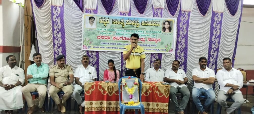 ಅವರು ಇಲ್ಲಿನ ರಂಗನಾಥ ದೇವಾಲಯದ ಸಭಾಂಗಣದಲ್ಲಿ ಕನ್ನಡ ಸಾಹಿತ್ಯ ಪರಿಷತ್ತು, ಕರ್ನಾಟಕ ಜಾನಪದ ಪರಿಷತ್ತು, ಜಿಲ್ಲಾ ಕನ್ನಡ ಸಾಹಿತ್ಯ ಸಾಂಸ್ಕೃತಿಕ ವೇದಿಕೆ, ಪತ್ರಿಕಾ ಬಳಗ, ಇತಿಹಾಸ ಪರಂಪರೆ ಉಳಿಸಿ ಅಭಿಯಾನ ಟ್ರಸ್ಟ್ ವತಿಯಿಂದ ಆಯೋಜಿಸಿದ್ದ ದಸರಾ ಕವಿಗೋಷ್ಠಿ, ಸಾಧಕರಿಗೆ ಸನ್ಮಾನ, ಕಾರ್ಯಕ್ರಮದ ಸರ್ವಾಧ್ಯಕ್ಷತೆಯನ್ನು ವಹಿಸಿ ಮಾತನಾಡಿದರು.