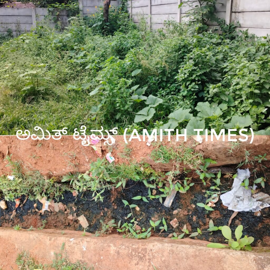 ಗ್ರಾಮ ಪಂಚಾಯಿತಿ ಆವರಣದ ಪಕ್ಕದಲ್ಲಿ ಬೆಳೆದ ಗಿಡಗಂಟಿಗಳು ಹಾಗೂ ಗ್ರಾಮ ಪಂಚಾಯಿತಿ ಮುಂಭಾಗದಲ್ಲಿ ಇರುವ ಚರಂಡಿ.