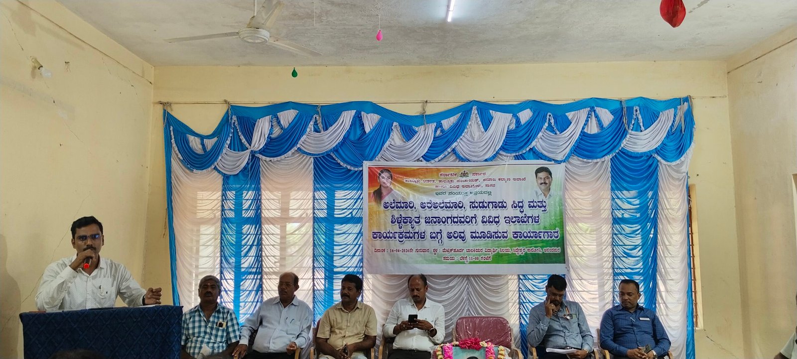ನಗರದ ಸಮೀಪದ ಸಿದ್ದೇಶ್ವರ ಕಾಲೋನಿಯ ವಿದ್ಯಾರ್ಥಿ ವಸತಿ ನಿಲಯದಲ್ಲಿ ಅಲೆಮಾರಿ, ಅರೆ ಅಲೆಮಾರಿ, ಸುಡುಗಾಡು ಸಿದ್ಧ ಹಾಗೂ ಶಿಳ್ಳೆಕ್ಯಾತ ಜನಾಂಗದವರಿಗೆ ವಿವಿಧ ಇಲಾಖೆಗಳ ಯೋಜನೆಗಳ ಬಗ್ಗೆ ಅರಿವು ಮೂಡಿಸುವ ಕಾರ್ಯಗಾರವನ್ನು ಉದ್ಘಾಟಿಸಿ ಅವರು ಮಾತನಾಡಿದರು.